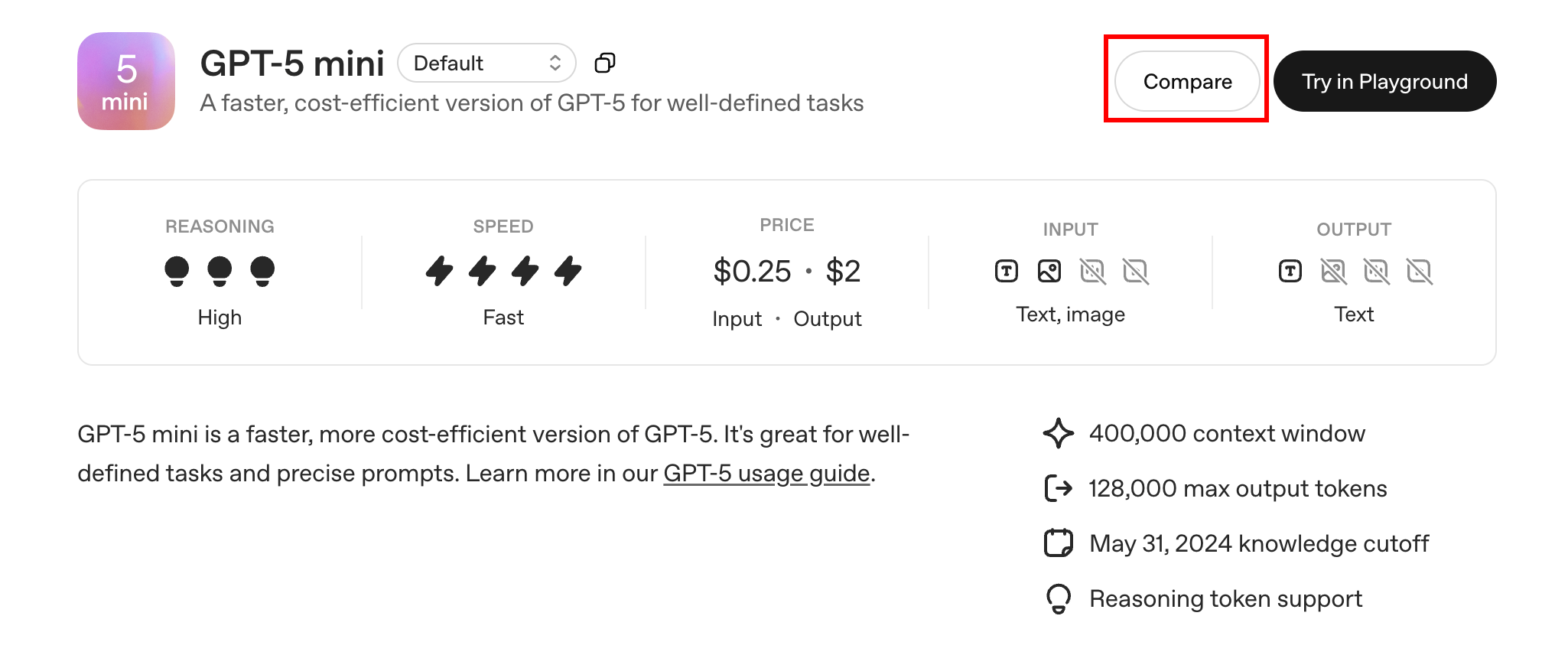As a demonstration, we are going to compare GPT-5.2, GPT-5 mini, and GPT-5 nano.