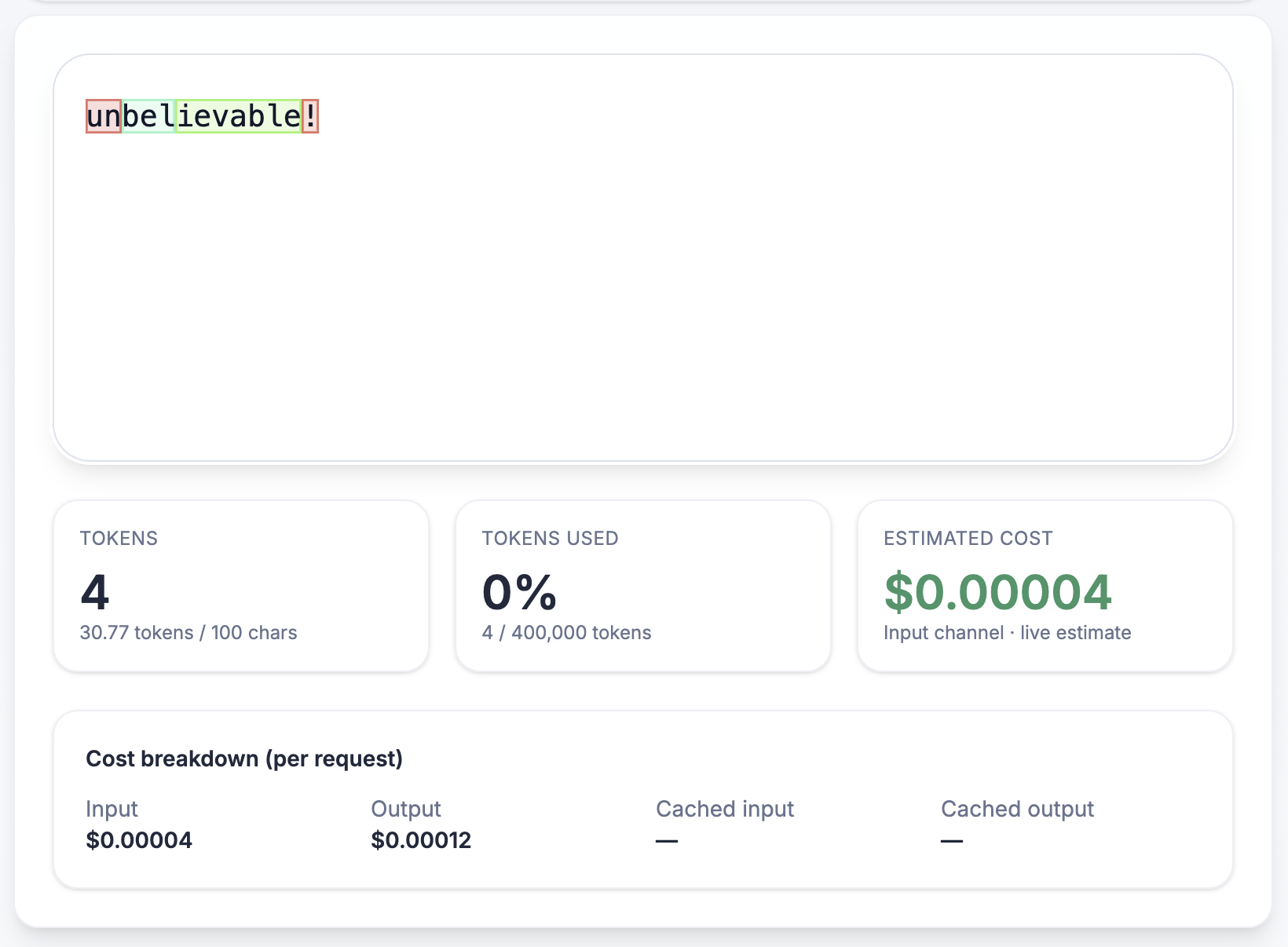 For example, the word "fantastic" might be a single token, while "unbelievable!" could be split into several tokens like "un", "bel", "ievable", and "!". There are many visual tokenizer platforms you can use to test this, such as the GPT-Tokenizer Playground.
