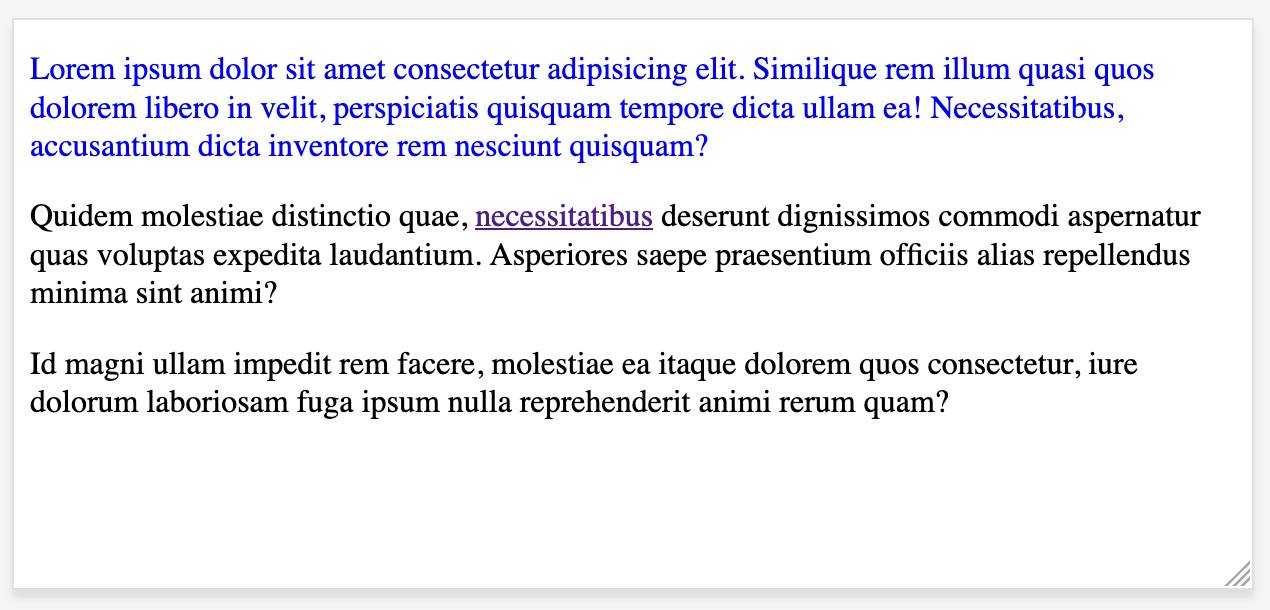 <p id="first" class="blue underline">Lorem ipsum dolor. . .</p>