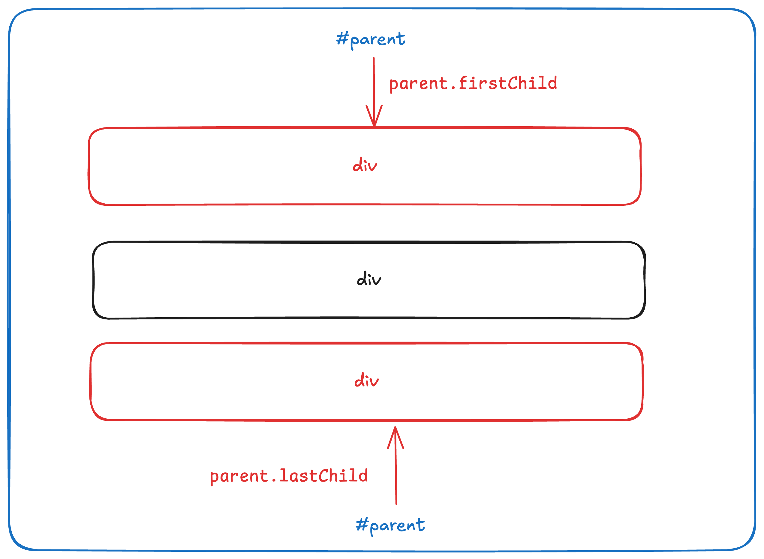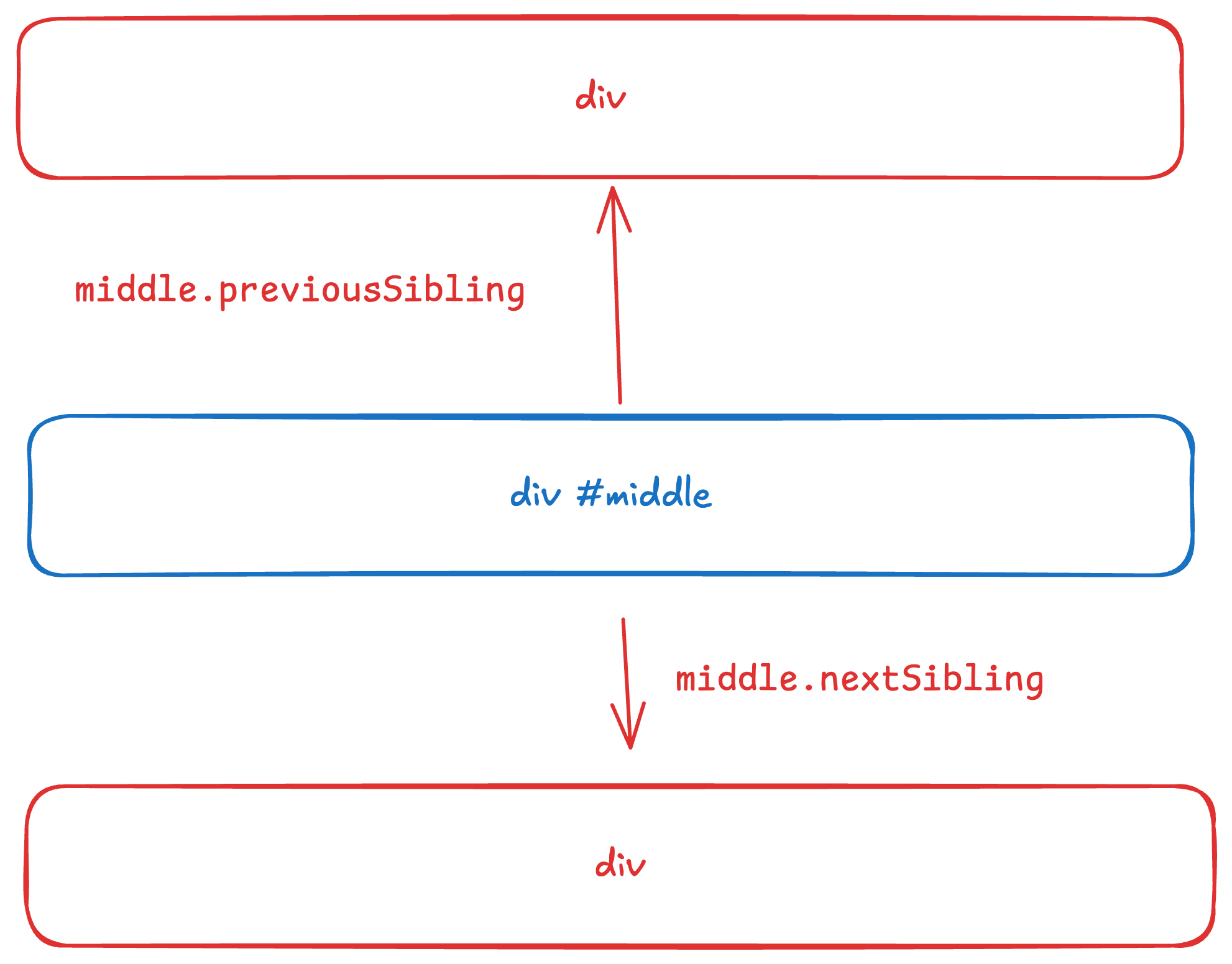 console.log(middle.nextElementSibling);<!doctype html> <html lang="en"> <head> <meta charset="UTF-8" /> <meta name="viewport" content="width=device-width, initial-scale=1.0" /> <title>DOM Traversal Demo</title> </head> <body> <div id="parent"> <p id="first">First child</p> <p id="middle">Middle child</p> <p id="last">Last child</p> </div> <script src="script.js"></script> </body> </html>